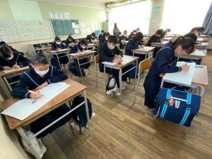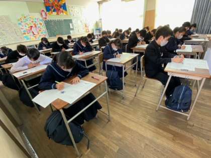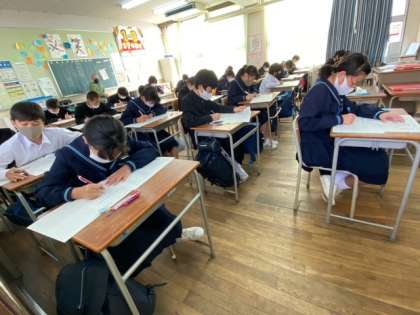 1年生の3限目は、保健体育のテストです。最後の教科となるので、力を振りしぼってがんばれ!