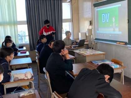3年生は、性教育(デートDV)の授業を行っています。デートDVとは、交際中の恋人間のDVのことを言います。みんなの年齢で起こりやすいことについて、しっかり学びます。