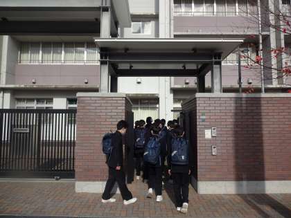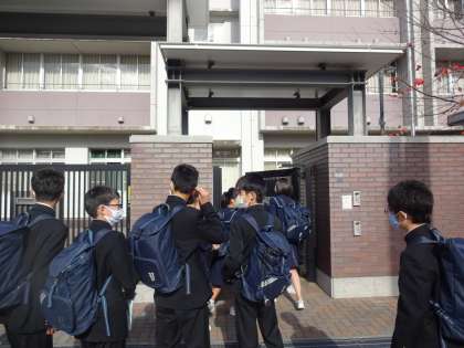 地下鉄を乗り継いで、高等学校を訪れました。学校紹介ビデオを見たり、校舎内を見学したりしています。