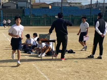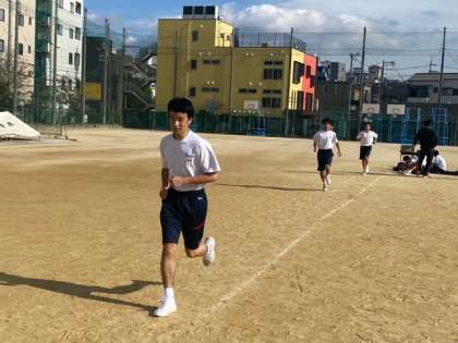2年生の男子保健体育の授業では、持久走を行っています。1500m(トラック7周半)を走ります。冬場のスポーツといえばマラソンですが、生徒たちも持久走で体力をつけるとともに心身も鍛えていきます。