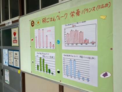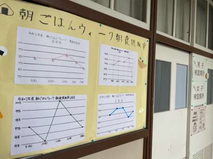 先月実施しました「朝ごはんウィーク」の結果グラフを、保健委員が作成してくれました。朝ごはんをしっかり食べることで、1日の活力が生まれます。健康的な生活を送るためにも、3食の食事と睡眠をしっかりとりましょう!