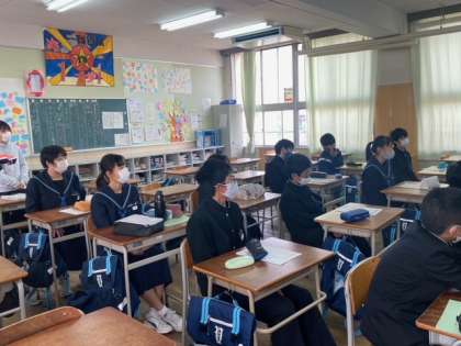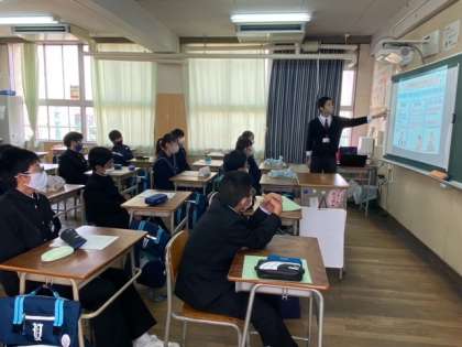 1年生の5・6限目は、職業体験セミナーを行っています。大阪医療看護専門学校から6種類の専門職の方に来ていただいています。