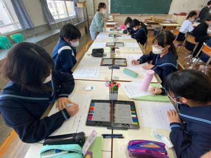 デザインのグループは、缶バッチの製作を行います。デザインのお仕事は「売れるモノづくり」であり、お客さんが欲しいと思う商品を発想することが大切だそうです。