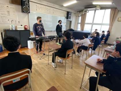 ヴォーカルのグループは、キーボードの演奏に合わせて歌を歌います。「みんな恥ずかしがらずに!」と声をかけられながら、歌っています。