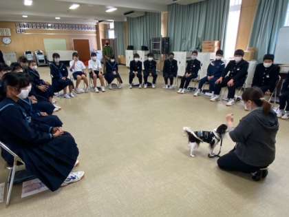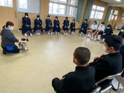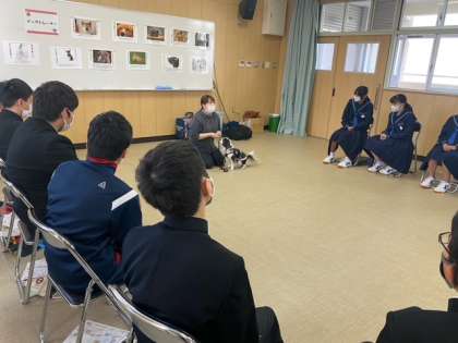 ドッグトレーナーのグループは、犬にさまざまな動きを教える時のコツを学んでいます。とってもかわいい犬を見ながら、犬の気持ちも理解しながら教わっています。