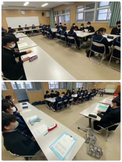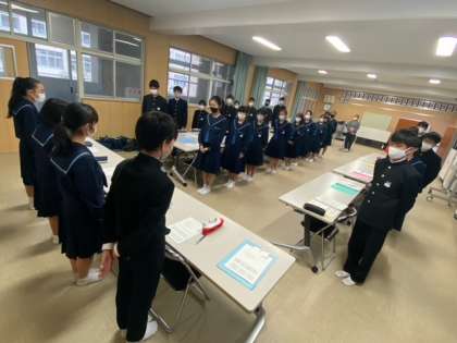 放課後は、生徒議会を行いました。生徒会役員が進行して、各学年代表や専門委員会からの報告をしています。新型コロナウイルス感染症対策として、さまざまな制限がありますが、生徒たちはいろいろと考えてくれています。
