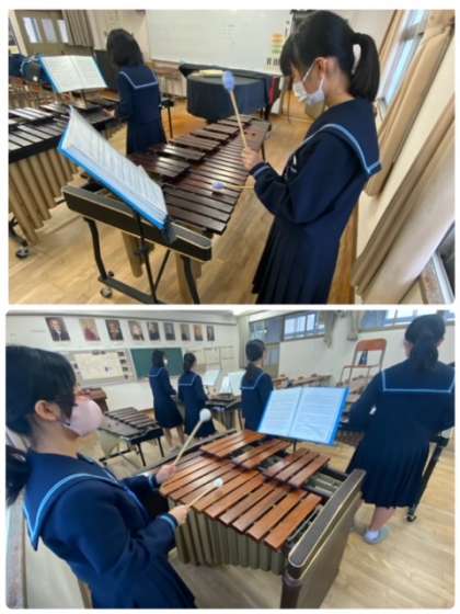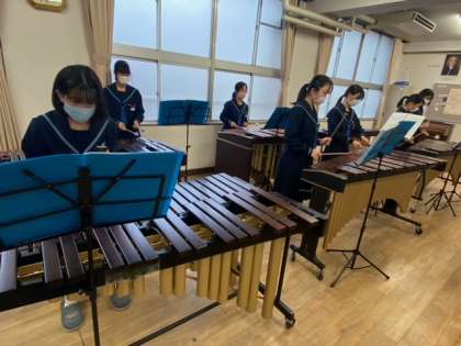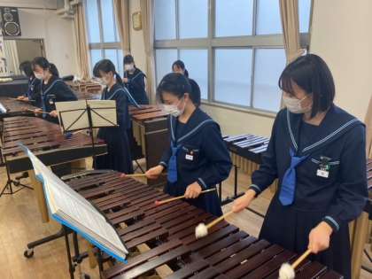 音楽室では、音楽部がマリンバ演奏の練習を行っています。