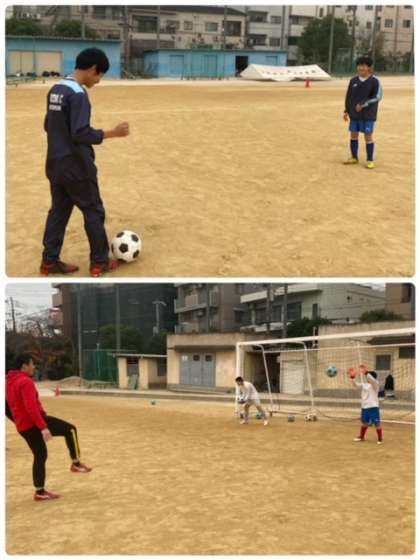 グラウンドでは、サッカー部が練習を行っています。お天気でも日が暮れるのが早いので、短時間練習も集中力が必要です。ウォーミングアップもしっかりして、チーム練習を行っています。