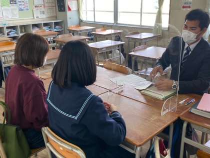 本日も3年生の進路懇談会を行っています。第4回実力テストも終わり、2学期の成績が出ました。自分の進みたい道に向かって、進路選択から決定をしていきます。