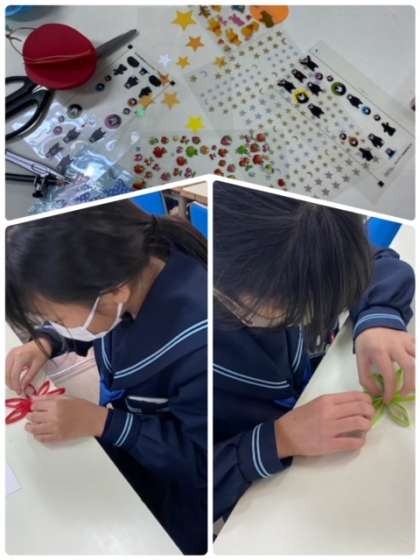 文芸部の生徒たちが集まってきてくれました!クリスマスツリーにオーナメントを作ります。どんどん出来あがってきました!来週まで続いていますので、是非参加してください。