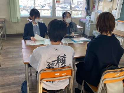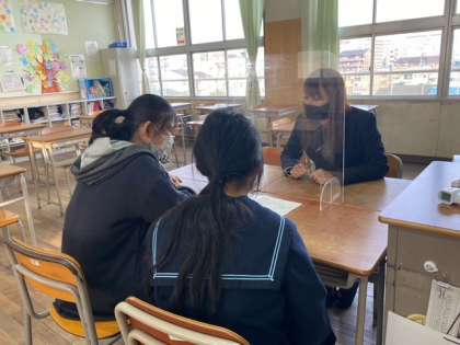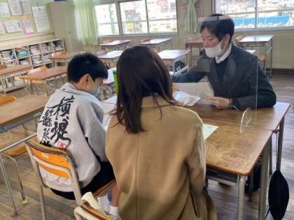 1年生も2学期末懇談会を行っています。アクリル板と机イス消毒、換気をしておりますので、ご協力をお願いいたします。