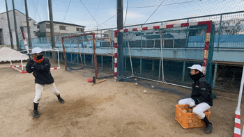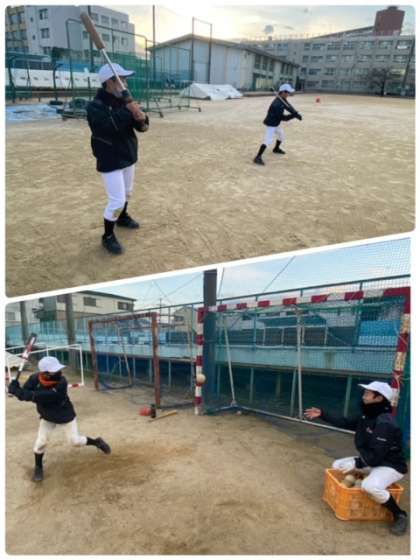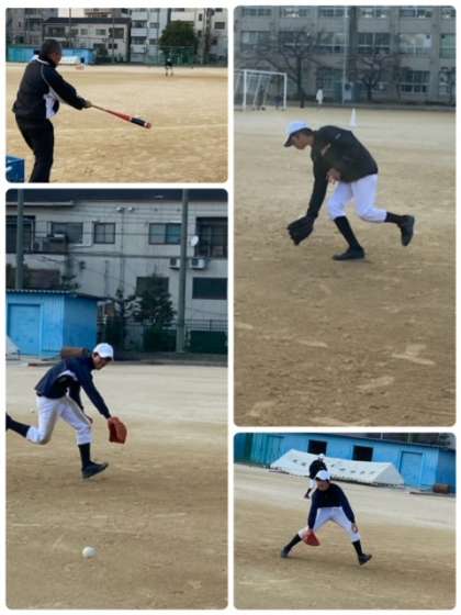 グラウンドでは、野球部が練習を行っています。1人ずつのノック練習では、左右に振られる球を必死にあきらめずにキャッチす忍耐力も鍛えます。お互いに声をかけながら頑張っています。ティーバッティングの様子も真剣に行っています。