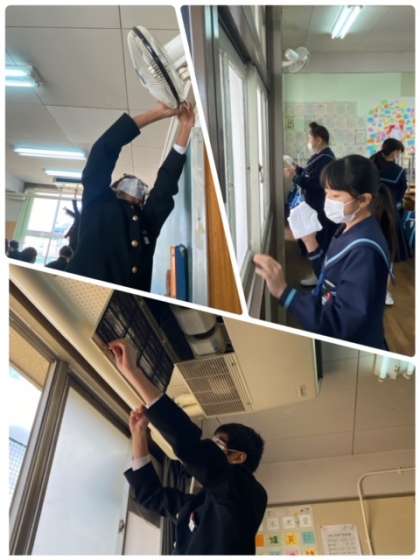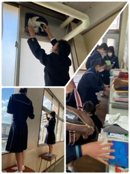 1年生の大清掃です。換気扇や扇風機、空調機のフィルターもしっかり洗います。2学期は最も長い期間でしたが、こうしてみんなで大掃除できることもうれしいことですね。