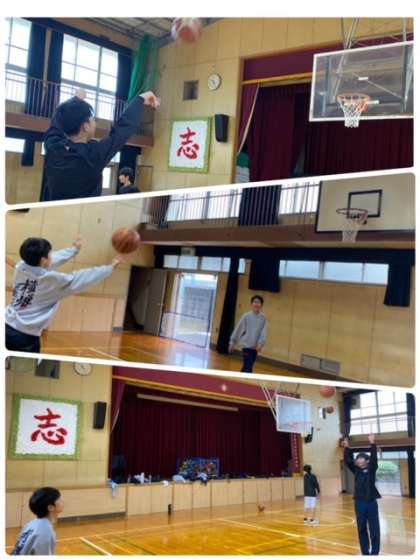 体育館では、男子バスケットボール部が今年初練習を行っています。