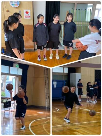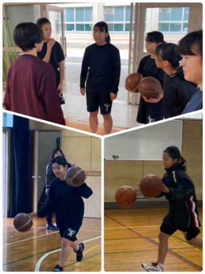 男子バスケ部の後は交替で、女子バスケットボール部が初練習を行っています。