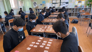 2年生の国語の授業では、五色百人一首に取り組んでいます。
