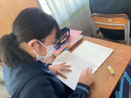1年生の国語の授業では、文法の学習を行っています。言語能力を育成する中心的な役割を担う国語科においては、言語活動を通して資質・能力を育成することをねらいとしています。