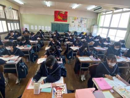 3年生は、明日から学年末テストがはじまります。1年間の総まとめのテストとなるので、最後までしっかり取組みましょう!