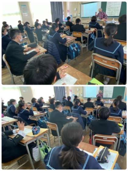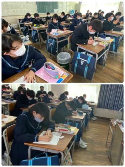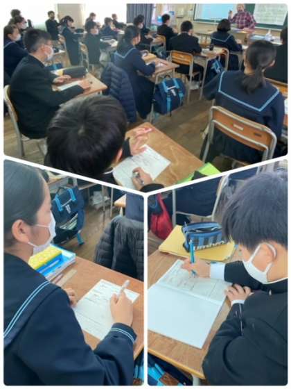 1年生の理科の授業では、音の単元を学習しています。「ハチの羽音と蚊の羽音は、どちらが高い音がするでしょう」の問いかけに、生徒たちは一人一人考えています。