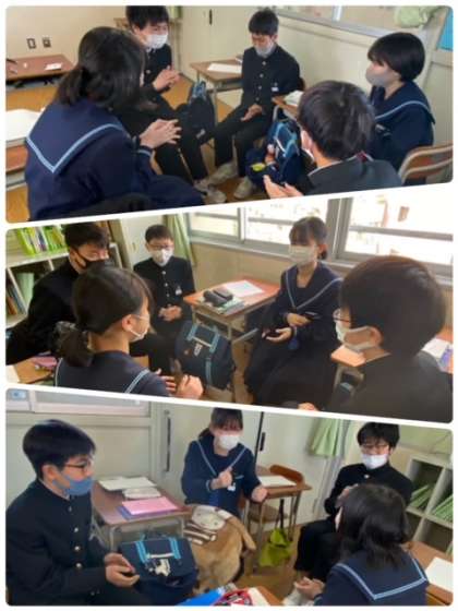 2年生の社会の授業では、日本の地理的分野を学習しています。キーワードとなる用語を覚えるために、グループになって古今東西ゲームを行っています。間違えずに、だんだん長く続けることができてきました。