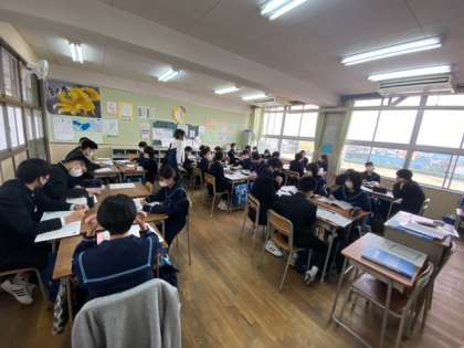 3年生の道徳の授業です。「千年先のふるさとへ」を題材にして、郷土の伝統や文化を大切にし、発展に努めることをねらいとしています。