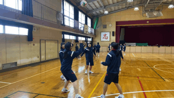 1年生の特別活動の様子です。クラスのみんなでレクレーションを行っています。体育の授業とは違って、担任・副担任の先生と一緒に身体を動かして交流を深めています。