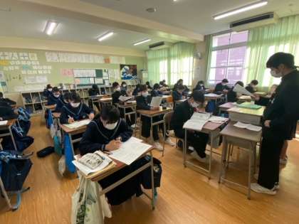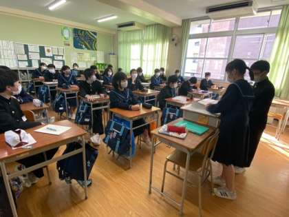 2年生の6限目は、来週の総合的な学習の時間に実施するスポーツ大会について、学級代表が説明を行っています。学年最後の行事となるので、クラスの団結をみせて、みんなが楽しめるように取り組んでいきます。