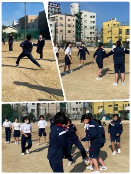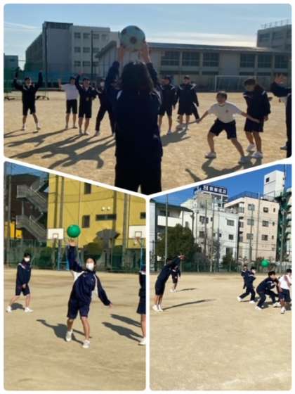 6限目、2年生の特別活動の時間は、スポーツ大会の練習を行っています。今日の日中は高気圧に覆われ晴れ渡る清々しい天候です。生徒たちも元気いっぱいに活動しています。