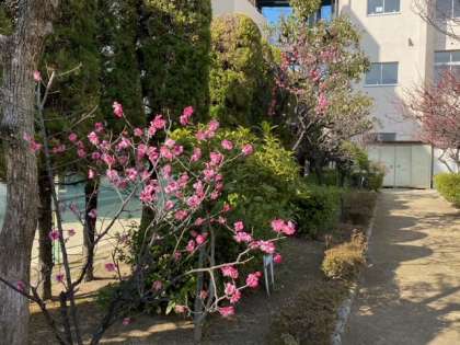 今日は春の陽気で温かい気候となりました。中庭には梅が咲き誇っています。何羽かのウグイスも梅をついばみにやってきています。春の訪れがすぐそこまで来ているようです。