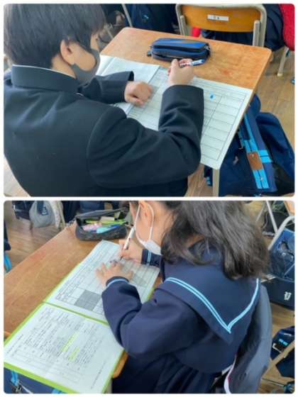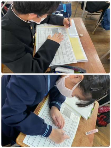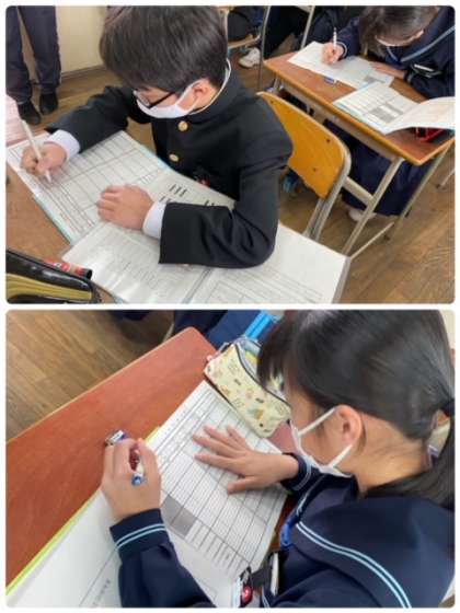 1年生の6限目は学年末テストについて、テスト範囲とテスト計画を作成しています。1年生最後のテストとなります。入学時に立てた学習の目標を達成するように、頑張りましょう!