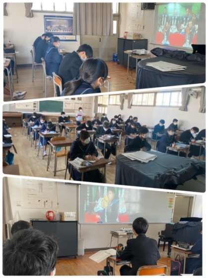 2年生の音楽の授業では、歌舞伎の鑑賞を学習しています。