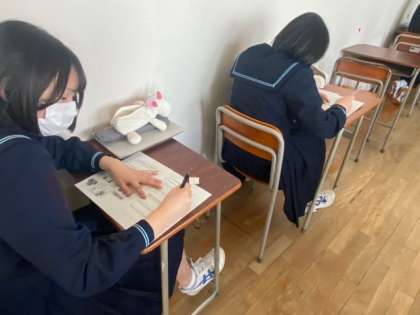 生徒たちにとって、あまり見る機会が少ないであろう歌舞伎の映像を食い入るように見ています。どんな楽器が使われているかを聞き取っています。