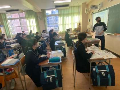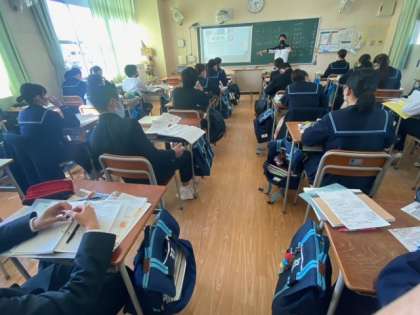 2年生の社会の授業です。地理と歴史に分かれていますが、学習内容は重複するところもあり、大事な用語は繰り返し学習します。歴史の大きな流れをとらえ、地理との関係を理解していきましょう。