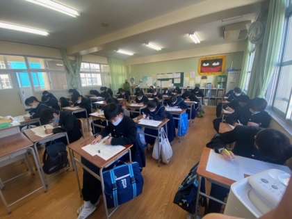 2限目は英語、3限目は音楽のテストです。高校入試においては、1・2年生までの学習範囲がほとんどです。これまでの学習内容はしっかり定着させておきましょう。