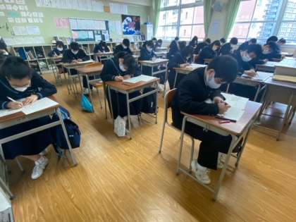 今日は学年末テスト最終日です。1限目は国語、2限目は技術家庭のテストです。