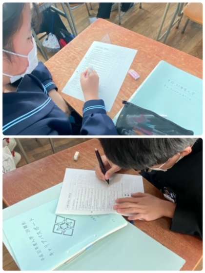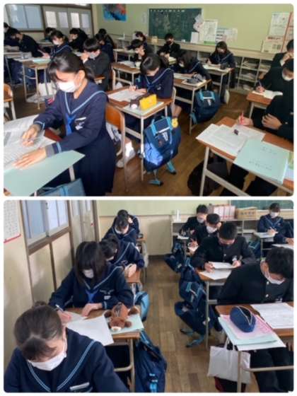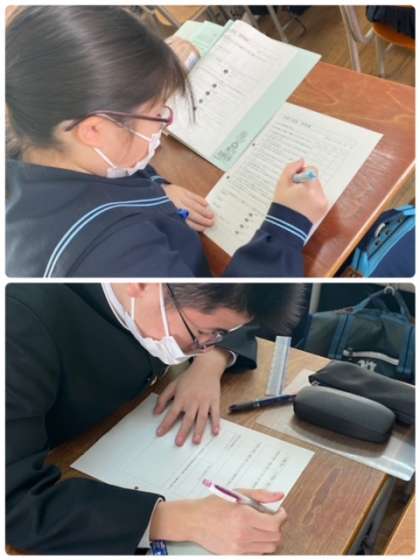 3年生の学級活動の時間では、キャリアパスポートや振り返りシートを行っています。1年間の学校生活を振り返り、自分自身を見つめ直しています。