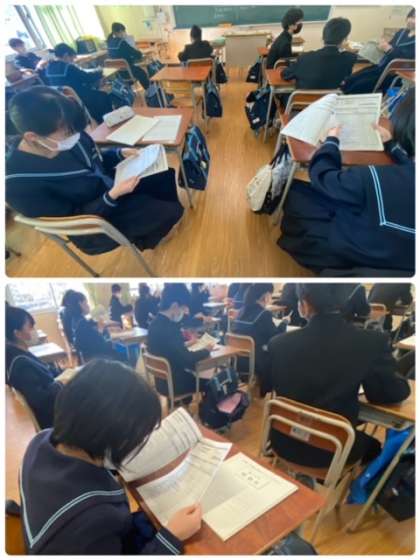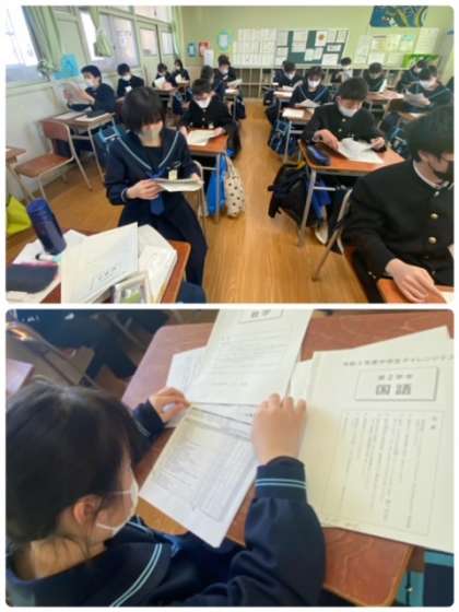 1月に実施しました「中学生チャレンジテスト」の調査結果を返却しています。チャレンジテストは、大阪府教育委員会が調査結果を活用し、大阪府公立高等学校入学者選抜における評定の公平性の担保に資する資料を作成し、各学校に提供されます。