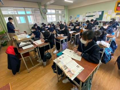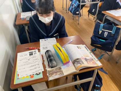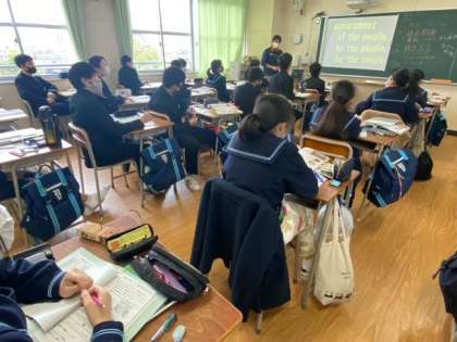 2年生の社会の授業では、歴史的分野の学習を行っています。アメリカの歴史、リンカーンの奴隷解放宣言について学び、現代の日本についても考えるように指導しています。