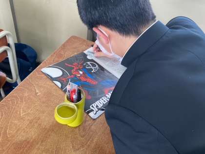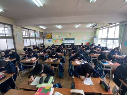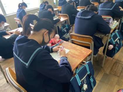 3年生の英語の授業では、リスニング問題に取り組んでいます。10日が公立一般学力検査が行われます。最後の力を振り絞って、頑張ろう!