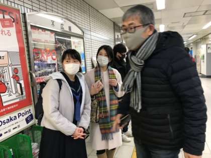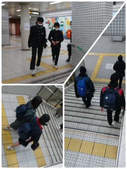 今日は、公立高校一般選抜学力検査です。3年生たちが、駅から出発していきます。自分の実力を発揮してがんばれ!