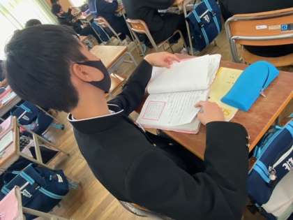 1年生の国語の授業では、文法を学習しています。2年生に進級する前に、1年生での学習内容をしっかり定着させるように基礎問題と応用問題に取り組んでいます。