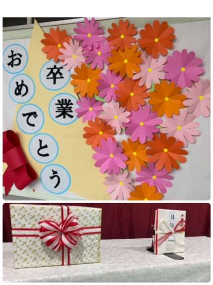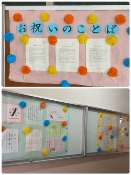 お祝いメッセージがたくさん寄せられています。卒業生のみなさんは、9時30分集合完了です。元気に登校してください!