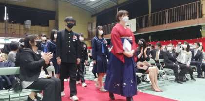 担任の先生を先頭に、音楽部マリンバの演奏で入場です。