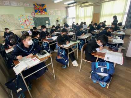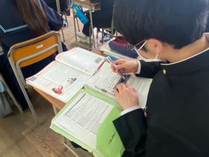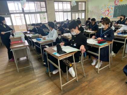 1年生の英語の授業の様子です。明日は、C-NETの先生との授業があるので楽しみにしている生徒もいるようです。今日の学習内容をしっかり家庭で復習しておきましょう。