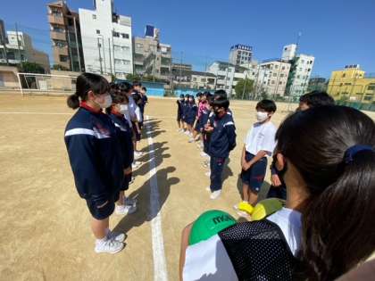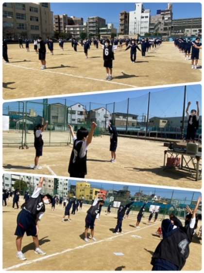 5・6限目の1年生は、スポーツ大会を行っています。生徒実行委員のメンバーが、企画運営をしています。開会式では、選手宣誓、ルール説明、ラジオ体操を行っています。
