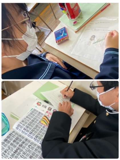1年生の美術の授業では、「自分マークを作る」学習を行っています。さまざまな企業のロゴマークを参考にしたり、自分の好きなものを組み合わせたりして、オリジナルマークのデザインを考えています。