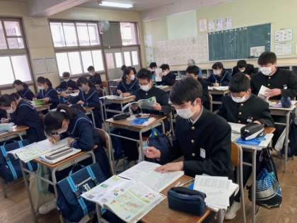 1年生の社会の授業では、日本の地理について学習しています。最近、日本各地で地震が起こったり、名産物が取り上げられたりしています。学習した内容がニュースに結びつくこともありますね。