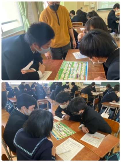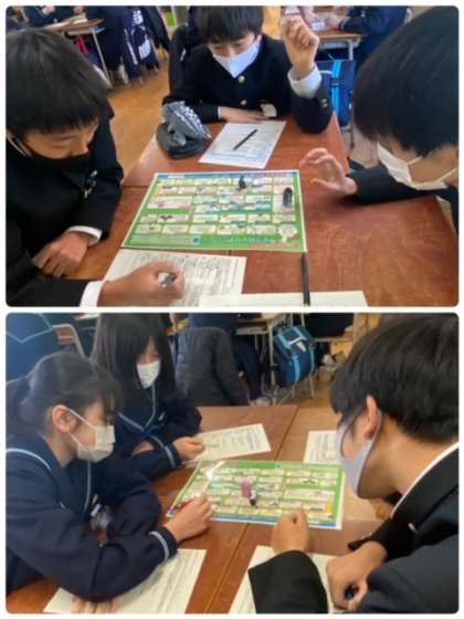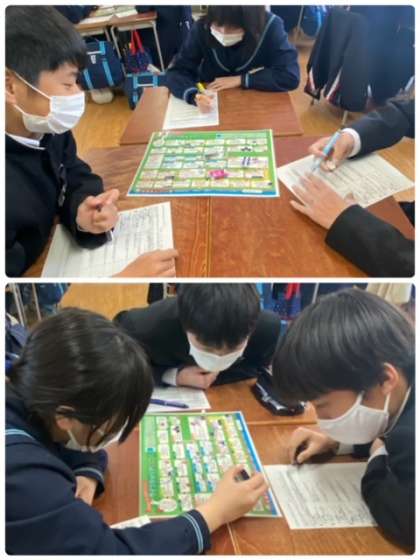 今年度最後の授業です。2年生の理科では、班学習を行っています。このクラスで過ごす最後の機会として、みんなでしっかり活動しています。