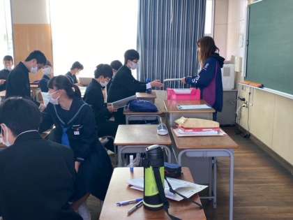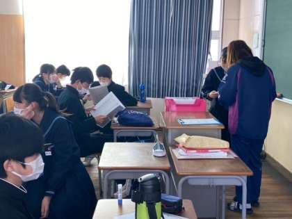 修了式の後、各学級で担任の先生から通知表をもらっています。