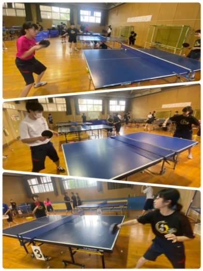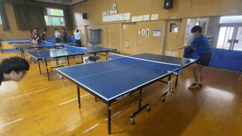 格技室では、卓球部が熱心に練習を行っています。1対1の激しいラリーを繰り広げています。迫力ある練習に圧倒されます。